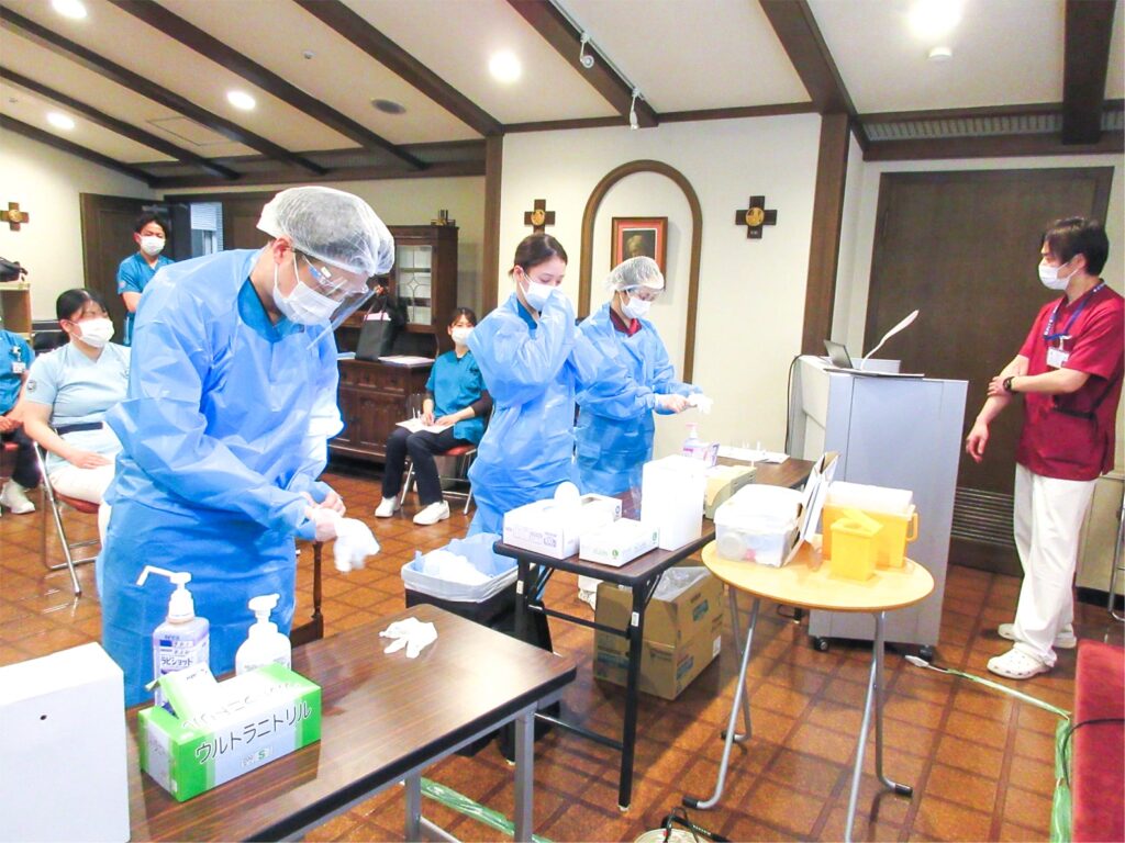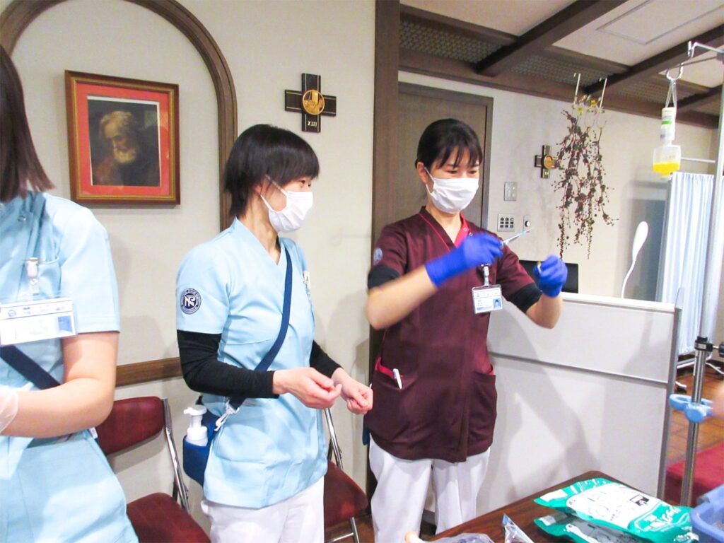 | 新採用者研修 3日間 | 看護技術研修 口腔ケア | 看護技術研修 PEG,NG チューブ管理 | 看護技術研修 採血、ルート確保、CVポート管理 | 看護技術研修 気管切開吸引 | |